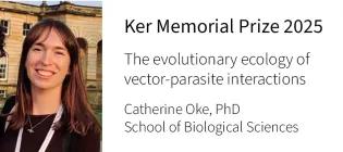 April 2025: Many congratulations to Catherine Oke, from the Reece lab in the School of Biological Sciences, for her PhD on development and transmission of malaria parasites. The Ker Memorial Prize is awarded each year to the student submitting the best PhD thesis in infectious diseases, and is given in memory of two eminent infectious disease physicians, Drs Claude Buchanan Ker, and his son Frank Leighton Ker.Catherine will present her thesis work in a talk at the 2025 Edinburgh Infectious Diseases Symposium at the Royal College of Physicians on Friday 16 May 2025. I’m incredibly honoured to receive the Ker Memorial Prize for my work on vector-parasite interactions! It’s very rewarding to see interdisciplinary work being recognised in this way, and I’m hugely grateful to my supervisor Sarah Reece, whose support and guidance made this work possible. Catherine Oke Winner, Ker Memorial Prize 2025 About Catherine's work Malaria, the deadliest vector-borne disease, is caused by Plasmodium parasites, which are transmitted between vertebrate hosts by female Anopheles mosquitoes. However, despite its public health importance and decades of intensive research, fundamental aspects of malaria transmission remain poorly understood. By integrating evolutionary ecology, parasitology and vector biology, Catherine’s thesis investigates how the conditions inside a mosquito shapes malaria parasite development and transmission to new vertebrate hosts.Catherine’s work reveals that malaria parasites show considerable variation in how they grow and develop within the mosquito, and that they can adjust their behaviour to optimise their chances of successful transmission to a new host. For example, parasites can adjust their growth depending on the mosquito’s diet, in ways that may maximise their chance of transmission. Her work also demonstrates that environmental changes can affect mosquitoes and parasites in opposite ways. Although parasite productivity is lower in mosquitoes fed on nutrient-poor diets, these mosquitoes are more likely to bite in the evening, when humans are less likely to be protected by bed nets. Overall, Catherine's work highlights the need to consider how both mosquitoes and parasites respond to environmental change in order to better understand and control malaria. About Catherine Catherine graduated in 2017 with an integrated Masters in Biology from the University of Sheffield. After graduation, she joined London School of Tropical Medicine as a Scientific Officer working on a project investigating the genetics of attractiveness to malaria mosquitoes in the UK and The Gambia. In 2020, she moved to Edinburgh to begin her PhD. Catherine is currently a postdoc in Prof. Sarah Reece’s lab, and is due to begin her role as Research Co-lead on a NERC-funded project investigating how daily rhythms shape malaria parasite transmission and evolution in late May 2025. Related links About the Ker familyEdinburgh Infectious Diseases Annual SymposiumSchool of Biological SceicncsReece Lab This article was published on 2025-04-29